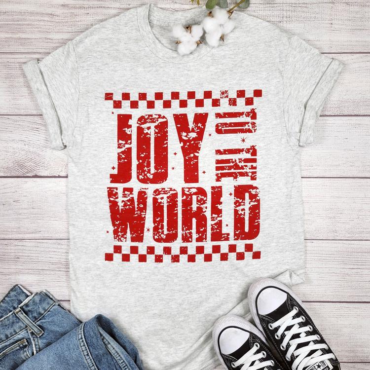 This Retro Checkered Joy to the World Shirt combines classic Christmas spirit with a modern vintage twist. Bold red distressed lettering on a soft gray tee — perfect for holiday parties, faith gatherings, or cozy winter days.